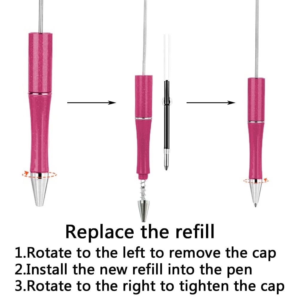 Pens are plastic with a variety of beads made from silicone, acrylic, or rhinestones.