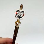 Pens are plastic with a variety of beads made from silicone, acrylic, or rhinestones.